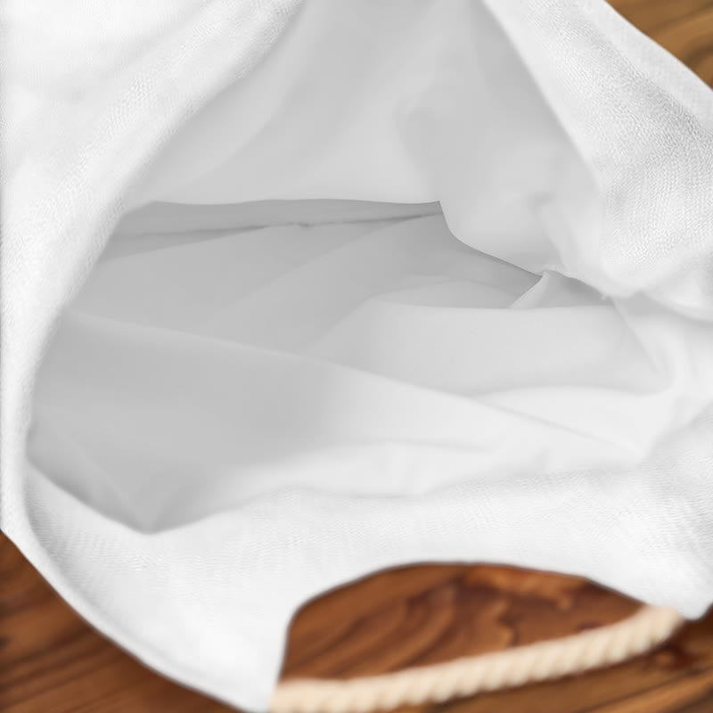 Interesting Cat Drinking Water In Lotus Pond Print Woven Handbag